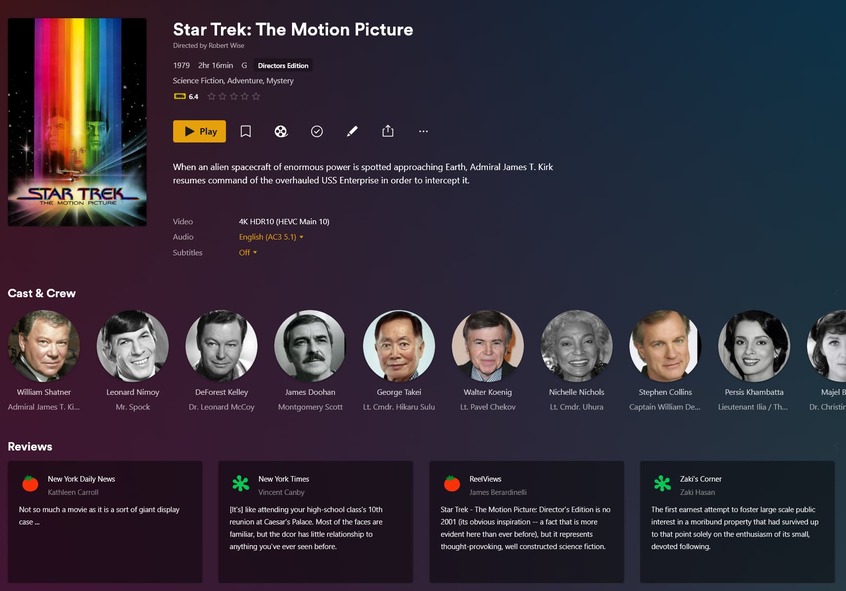 File: Star Trek The Motion Picture (1979) {tmdb-152} {edition-Directors Edition} [WEBDL-2160p][HDR10Plus][EAC3 Atmos 5.1][HEVC].mkv