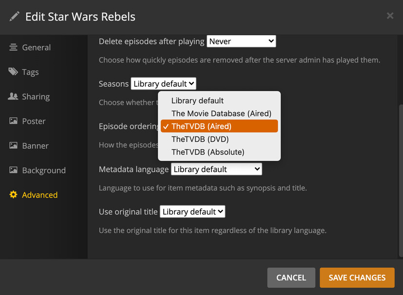Can someone for the Love of God, please give me the entire naming convention required including directory names and directory structure and any settings required in the “Edit” field to get Plex to read the series correctly. Assuming I do the plex dance and move everything out. rescan. empty trash, clean bundles. rescan. drop rebels back in. and rescan.