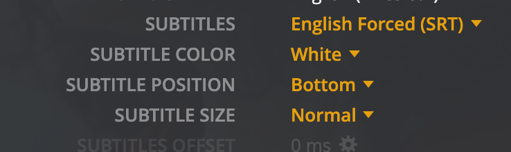 Plex is almost perfect to me except it does not allow user to change subtitles color, font, offset time, etc… like common HD video players else. It’s painful for my myopic eyes to keep watching the thin-white text.