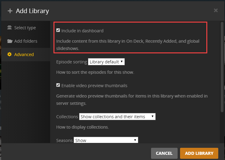 Thanks for this advice. I’m not sure I know what you mean though. How do I create a new library and how do I not show in dashboard? Sorry, I’m pretty new to Plex.