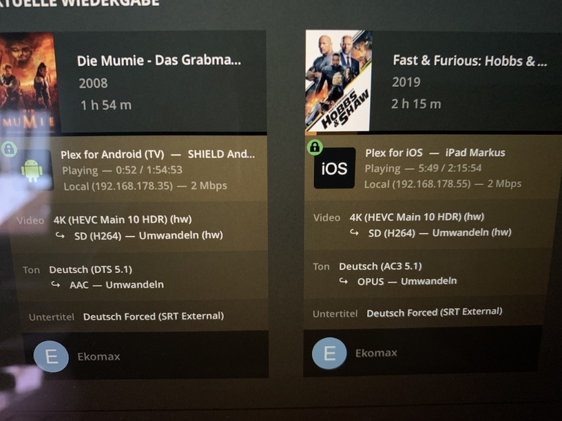 But it worked with two 4K HDR transcode down to 2 Mbit. Second transcode takes then around 30 sec to start. But no buffering then.