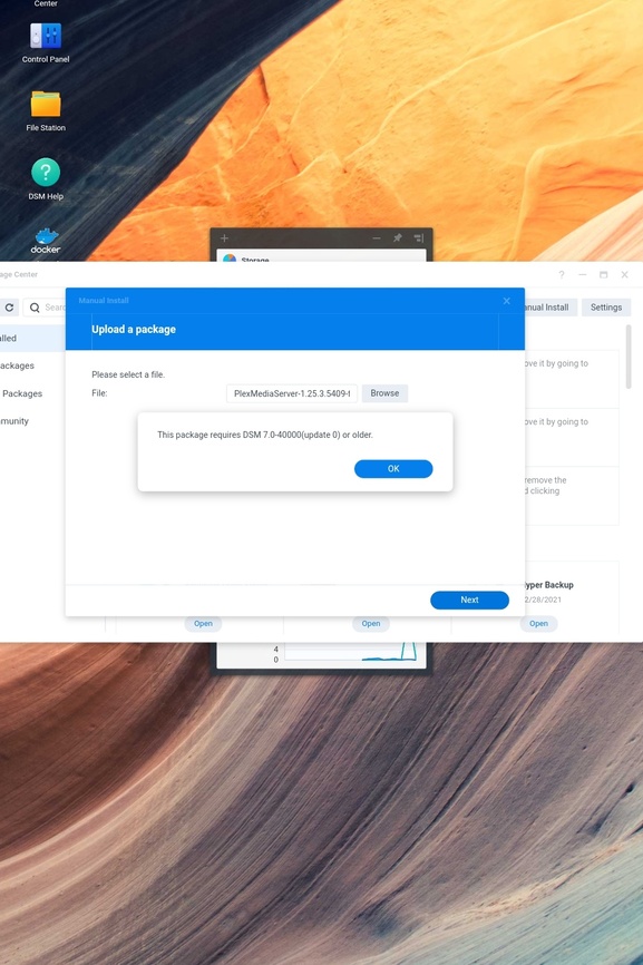 I also tried to download the package from Plex and install it manually but it said that that package is not compatible with my version of DSM. I think it was looking for an older version.