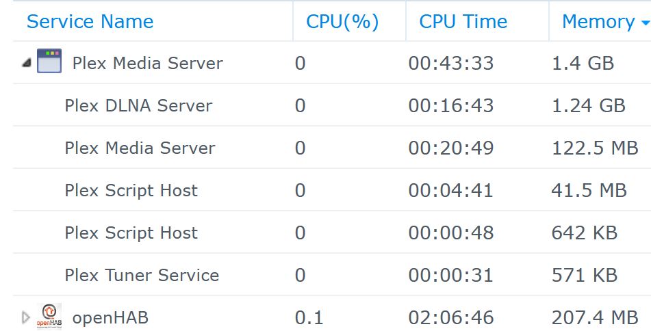 I will screenshot the full list of what is running and post it here tonight once I get home from work. There are some additional things, but as you can see in the original post Plex is by far the biggest RAM hog and it hasn’t always been this way.