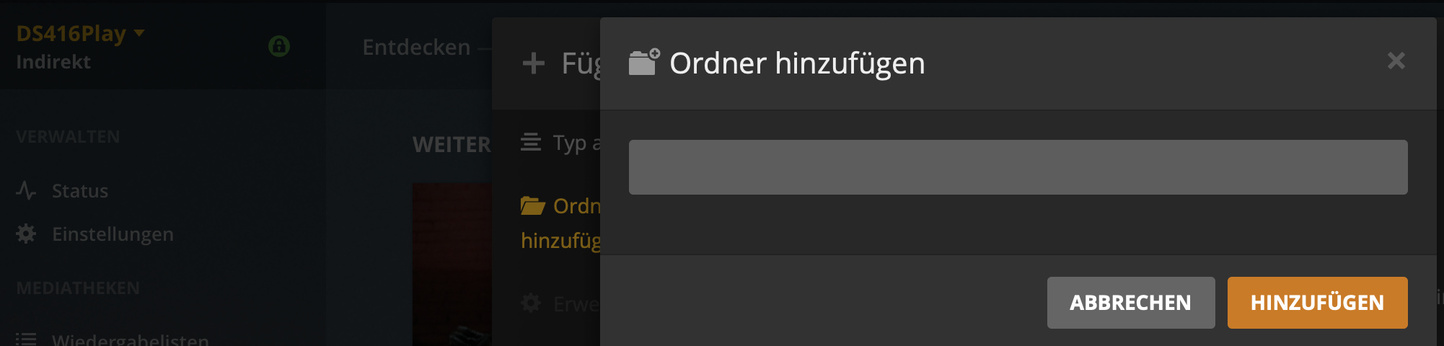 Nun verbindet sich auch der Plex Media Server mit der DS416plus.