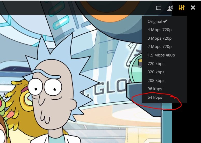 During playback of a movie I was changing the quality setting in the dropdown, well I clicked the 64kbps and managed to brick Plex. Any video I try to play regardless of size or quality I get: Not enough bandwidth for any playback of this item. Required minimum bandwidth is 77kbps and only 64kbps is available.
