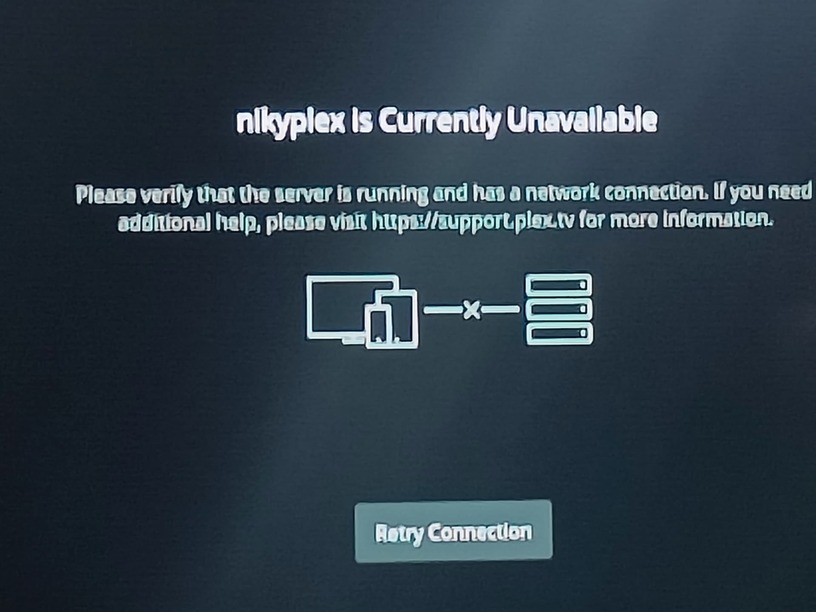 The LG Plex Media Server App shows that both servers connected to my account are unavailable.