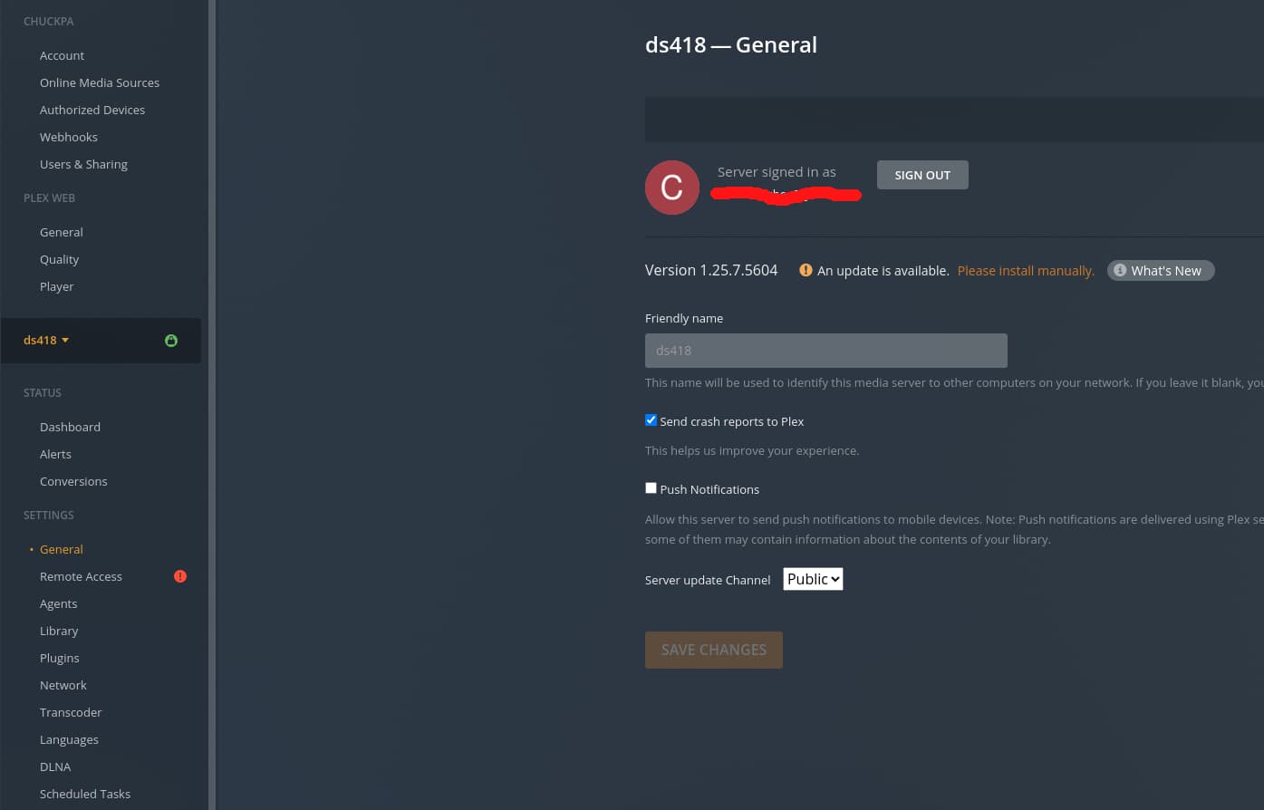 Maybe I am missing something but I am on the Plex/Web on my computer. I click settings in the upper right corner and then on the left side I do not see anything that says Server.