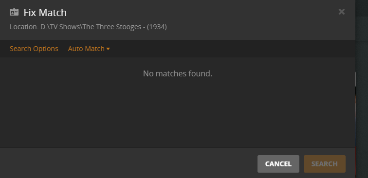 I am not sure where to go with this. I have looked at other people talking about The Three Stooges (1934) but not this issue. Ever since plex has upgraded to “Plex TV Series” as agent instead of just putting The TVDB. I have noticed that the Meta Data cant find “The Three Stooges (1934)” at all. I have tried everything and it still cant find it. When I put the “TVDB” as the agent is does. It is worded exactly as it is in the TVDB. The folder and all its content is named exactly as the TVDB is. When I change the agent to “The TV DB” it tells me to “Upgrade Matching” Please fix this issue. The Three Stooges (1934) has not been recognized by the Meta Data and refresh Library and even going in and “Fix Match” function in a long time. So as for now its just grayed out in my library. Frustrating.