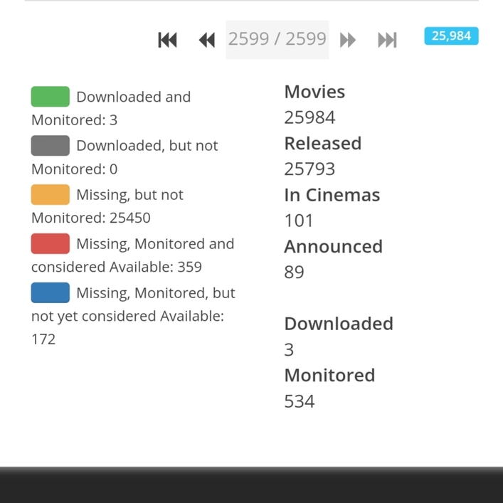 So, I’m one of those guys you’re speaking of. To put it bluntly, I have over 25k movies in my Radarr Database. I use a SeedBox to handle all the downloading, metadata collection, etc.. Thus why you see only a handful of movies actually added. This isn’t all the movies either, I’m missing about another 10k or so. I host mine on Google’s G Suite, I’m pushing north of 350TB of space used, now this isn’t everything. I have servers in my storage unit that have data I need to upload, but currently in a crappy situation.