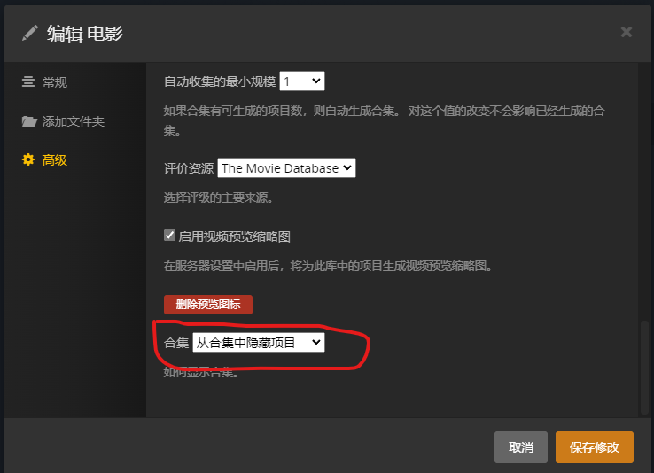 请问如何将系列电影合并显示?我已经在媒体库中做了如下设置: