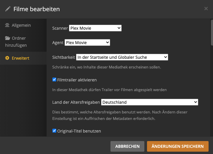 Wie kann ich Plex erklären, dass ich deutsche Trailer suche?