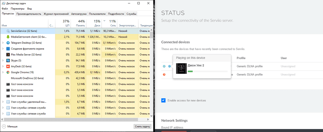 Thank you for answer. Servio - just DLNA server in Windows. And Servio don’t have app, like Plex on Samsung Tizen OS. I use native Samsung video player, when watching film John Wick 2 with Servio (without transcoding and buffering).