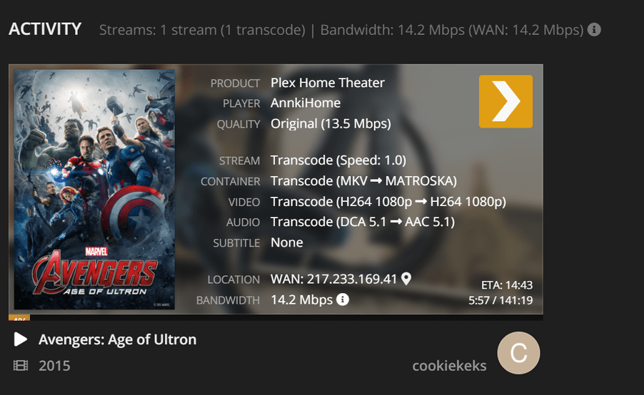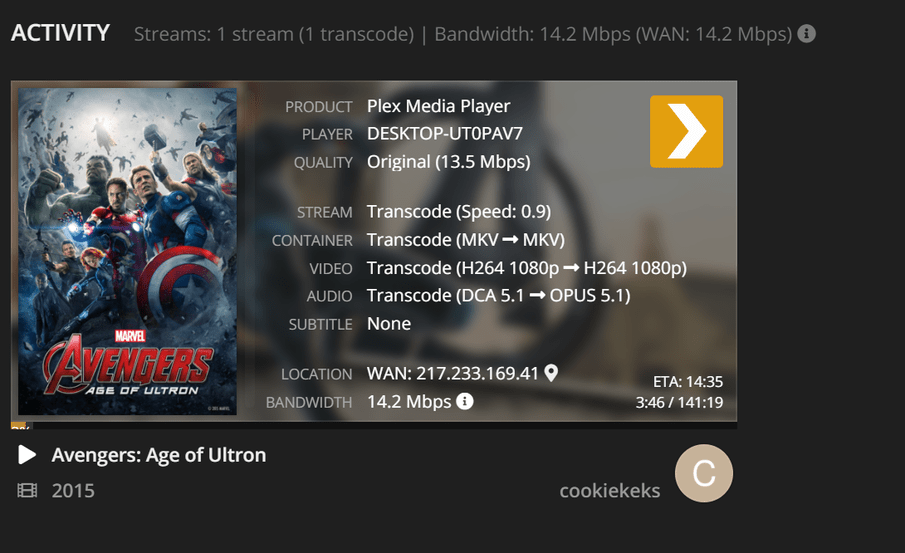 Edit: An der Internetleitung sollte es nicht liegen, dass Plex diese transkodiert.