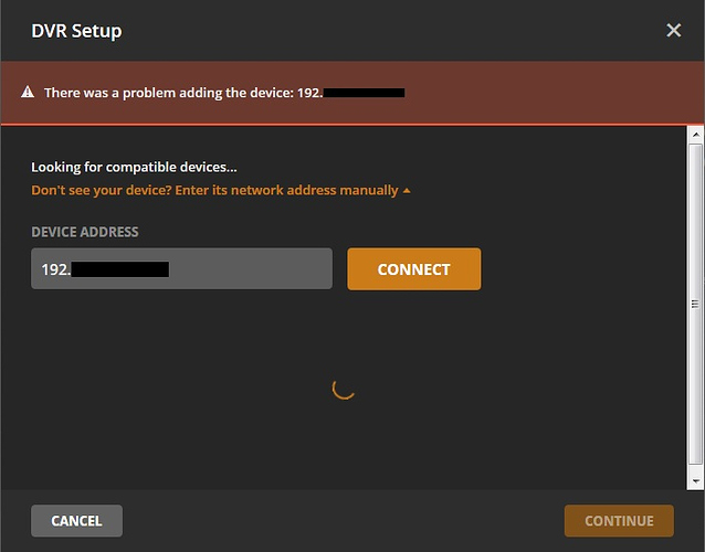 When I go to create a DVR in Plex, the desktop Plex server finds the local tuner card with no problem, but the NAS Plex server can’t see it, even if I explicitly provide the IP address.