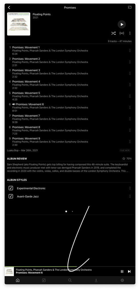 I’m sure this has been covered, but I am noticing more and more than it’s super easy to accidentally engage another track from certain list views … If you double-click on the player in the low part of the window, it opens up next by default and there are other things in the queue beyond that album usually … I’ve ended up a few times on something completely different and of course there’s no obvious back at that stage either … Here’s a basic sequence for me … if you move too quickly you can get lost immediately. Would love to see a more persistent back nav capability. Roon does this extremely well.