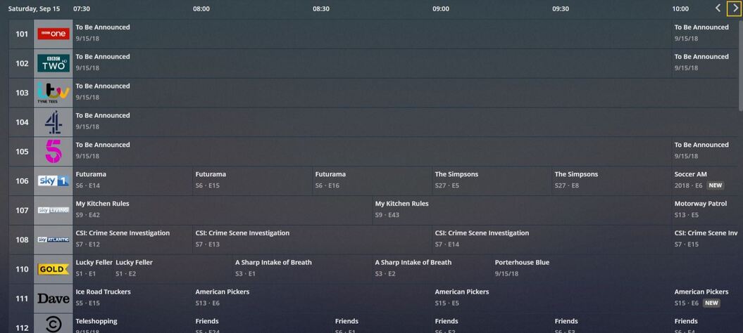 Today is Friday and if I look at Saturday evening it is saying ‘To be announced’ for the main UK channels e.g. BBC1, ITV etc. There are a lot of channels that are ok, but get worse as you go further ahead.