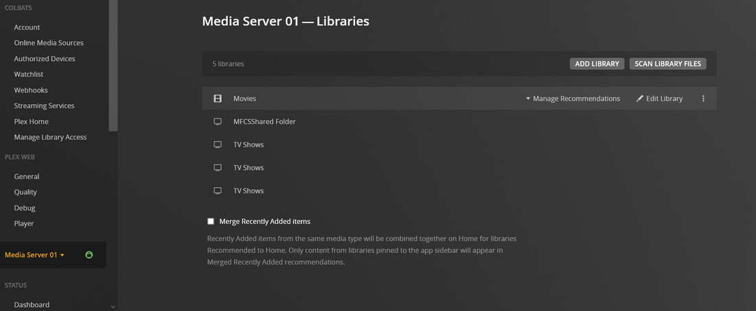 This morning I checked the folders and somehow one season of the Agents of S.H.I.E.L.D. had appeared in the TVShows folders, but my own media “The Shield” is still not present in MFCSShare Folder. When I go to Mange > Libraries I see the five libraries (Movies, MFCSShared Folder and 3 TV Shows )