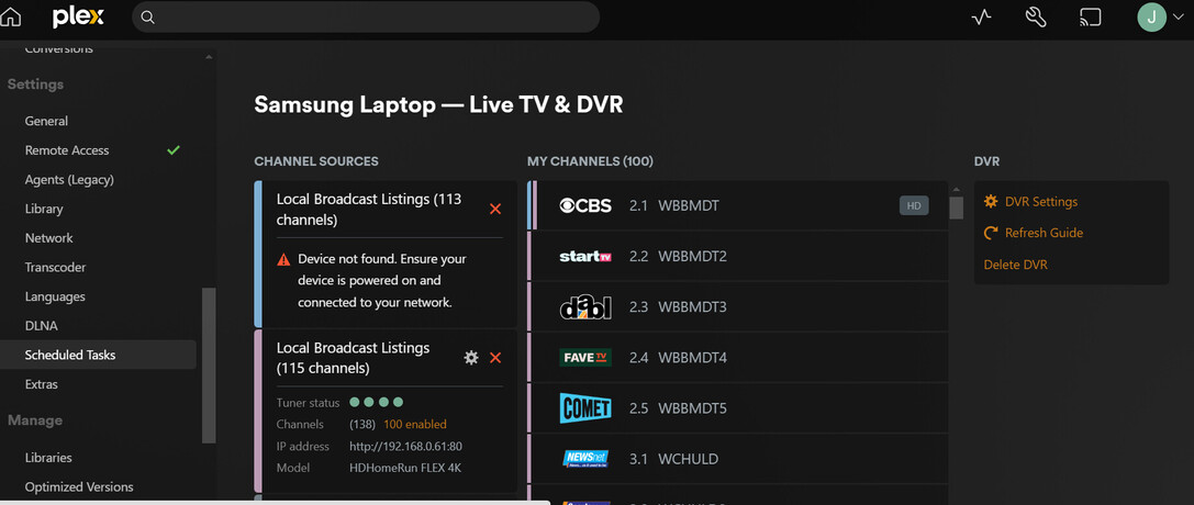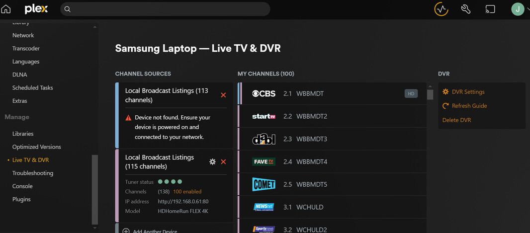 Thank you to all who helped me install the Hauppauge WinTV tuner. I now am trying to leave the Hauppauge tuner install on Plex and install a HD Homerun HDFX-4K tuner on plex. Can both of these tuners coexist on Plex Media Server at the same time? With the Hauppauge tuner it must be connected to the USB port on my laptop which is difficult because the antenna connection will have to follow my portable Samsung laptop, hence the reason I purchased the HD Homerun tuner which only needs to be connected to the modem/router.