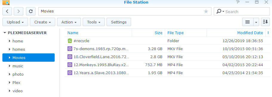 Remove everything you have done on the command line. You will fill up the tiny partition used by the OS if you donât. Everything must be done as a Synology âShared Folderâ . When you create the shared folders, they will be accessible to Plex by the name /volume1/movies (or whichever names you create)