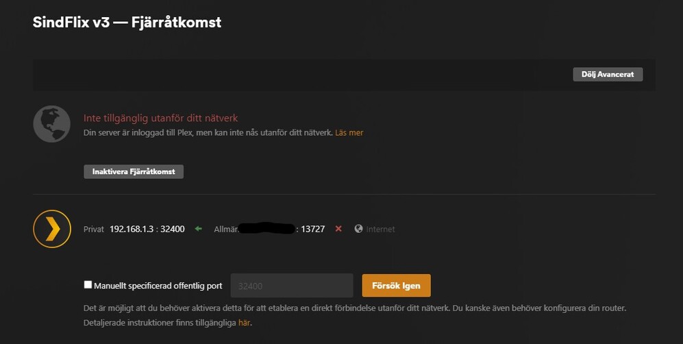 Changed DNS to above mentioned on the shield, rebooted Shield and router, tried to activate Remote Access without luck. Here are the logs: Plex Media Server Logs_2023-03-27_23-14-06.zip (1.1 MB)