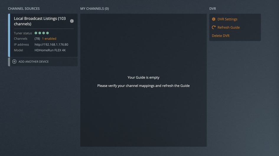 I then rebuild my Plex server using the latest 1.25.* image and successfully accessed the Live TV & DVR Settings page to re-add my HDHomeRun tuner. I see the guide and can watch local channels. So far so good.