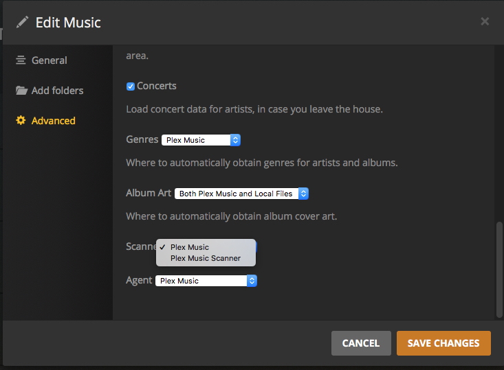 When I try to create a music library or edit one I created, PMP can’t make it use the Plex Music agent. Instead I get an error that says the changes can’t be saved. However, I can set my Agent to Plex Music if I do so in Plex for Mac, the web app, or the bundled app.