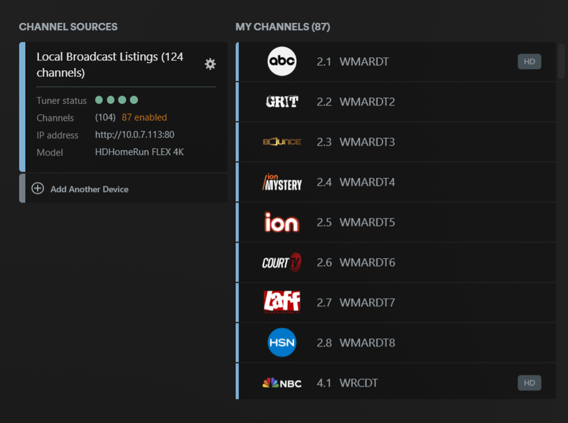 Tuner Make/Model: HDHR Flex 4K