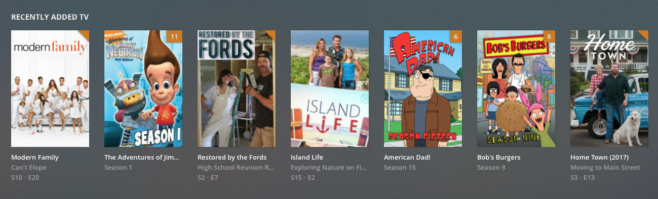 1 modern family, 11 jimmys, 1 restored by the Fords, 1 island life, 6 amercan dad, 8 bobs burgers…etc…