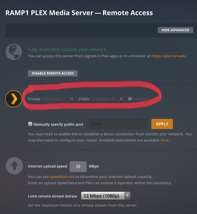 It says I have full access outside my network and it appears that I do. But, this is what it usually looks like when I don’t have any remote access.