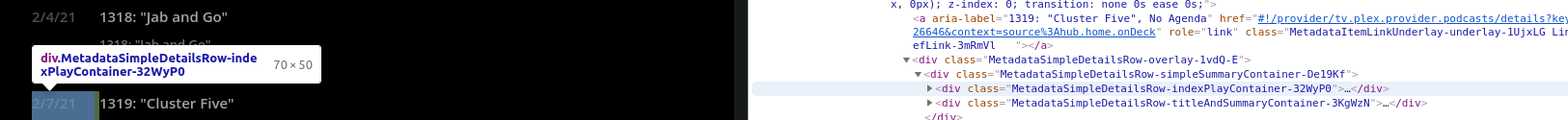 With the latest Plex-web version, podcasts no longer show their played status when viewing the list of episodes, making it hard to find which one you left off on. It used to show an orange dot next to unplayed ones, but now doesnt. When selecting an episode it still shows the watch status in that screen.