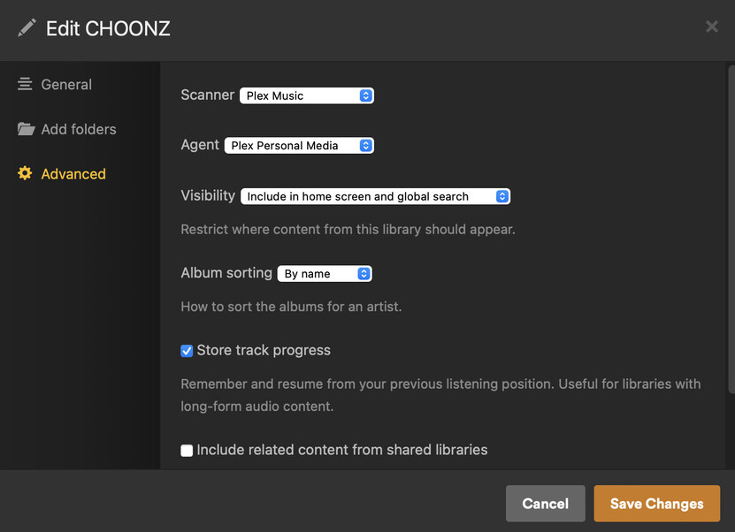 Note: If I change the Agent in the Advanced pane to Plex Personal Media, the options to Prefer Local Metadata & switch of the Bios etc. disappear.