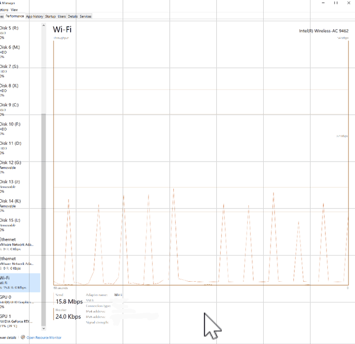 Here are some screenshots of resource utilization anyway. As you can see, I’m not even close to maxing out cpu or ram. Gpu is pegged for the first 300s per my settings in Plex. This is transcoding a single 4k hevc movie to 720p. Sorry screen shots are terrible; i did it on my phone via remote desktop client. CPU isn’t being used for Plex transcoding at all. Ram usage is low (i think i even have a browser with like 30 tabs open now too). NIC spikes up to 20Mbps. Nothing to suggest a hardware bottleneck that I can see.