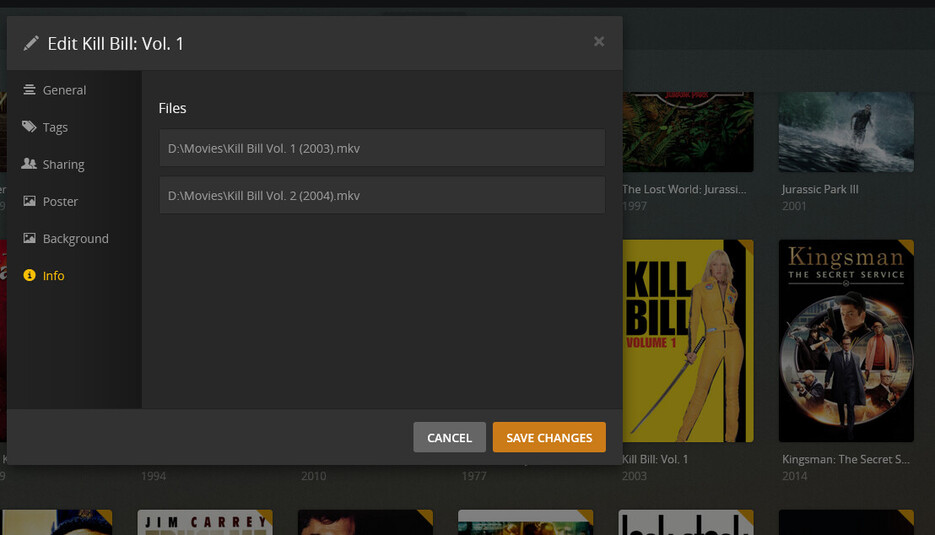 I switched to the Plex Movie scanner and agent, and I’m sure I probably did that prior to adding the Kill BIll movies. So I’m thinking that the new scanner and agent handle these movies better than the old one.