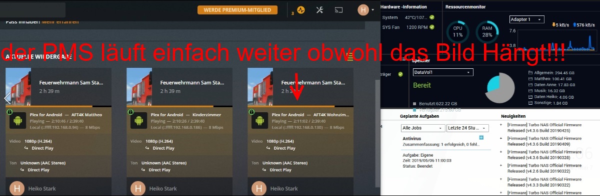 Alles probiert und die parameter sind unauffällig, AFT 4k Stick, NAS usw. von der Auslastung. Auffällig war das der PMS auf dem NAS einfach weiter läuft obwohl das Bild Steht.