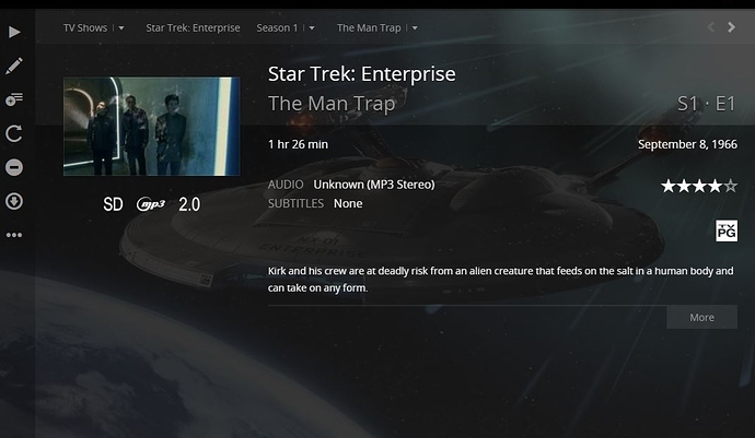 If you were paying attention, you would see that my post was seconds after your post about how to rename the episodes. But before I changed anything, the information magically updated. That tells me someone did something. The only reason why my files were in the format of Star Trek- Enterprise.S01E01.Broken Bow is because of what kec789 posted 6 days ago. I have Star Trek DS9, Star Trek Voyager and Star Trek TNG. All of them are in the format of Star Trek - DS9 - S1 E20 - In the Hands of the Prophets, Star Trek - TNG S1 E26 - The Neutral Zone and Star Trek - Voyager S1 E16 - Learning Curve. So I don’t think your comment about the hyphen is valid. Someone did back on Plex’s side for it to all of a sudden correct the episode naming and other meta data.